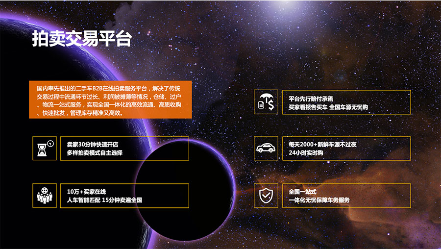 車(chē)易拍成立于2006年,在國(guó)內(nèi)率先推出二手車(chē)B2B在線拍賣(mài)服務(wù)平臺(tái)。車(chē)易拍始終堅(jiān)持“誠(chéng)信、高效、開(kāi)放、協(xié)作”的價(jià)值使命,解決二手車(chē)流通中的信任和效率問(wèn)題,推動(dòng)二手車(chē)供應(yīng)鏈數(shù)字化,實(shí)現(xiàn)二手車(chē)全國(guó)一體化高效流通。車(chē)易拍堅(jiān)持為二手車(chē)行業(yè)伙伴提供業(yè)務(wù)數(shù)字化、智能化的技術(shù)基礎(chǔ)設(shè)施及營(yíng)銷(xiāo)工具,幫助其借助新技術(shù)的力量與用戶和客戶進(jìn)行直鏈互動(dòng),持續(xù)提升誠(chéng)信透明的服務(wù)體系及更高效的經(jīng)營(yíng)運(yùn)營(yíng)能力,以共同建立起開(kāi)放互連、協(xié)作共贏的二手車(chē)數(shù)字經(jīng)濟(jì)體。