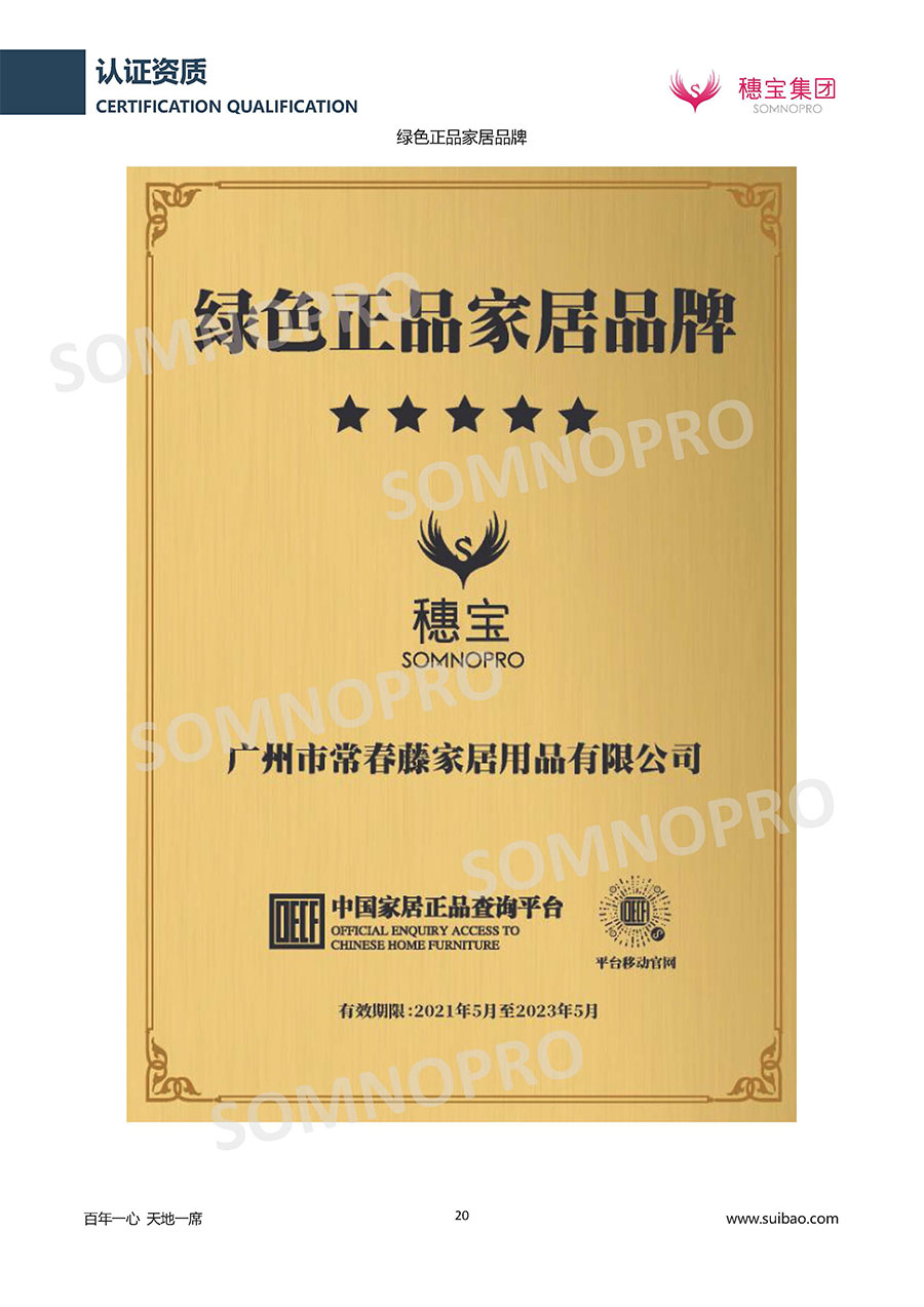 本著高品質(zhì)、高效率、重管理的原則,穗寶已通過ISO9001質(zhì)量管理體系認(rèn)證證書、ISO14001環(huán)境管理體系認(rèn)證證書、ISO45001職業(yè)健康安全管理體系認(rèn)證證書、中國環(huán)境標(biāo)志產(chǎn)品認(rèn)證證書、家居綠色環(huán)保領(lǐng)跑品牌、綠色正品家居品牌、企業(yè)標(biāo)準(zhǔn)“綠色領(lǐng)跑者”證書、CMS測量管理體系證書、CMS測量管理體系證書附件、廣東省“守信用重合同”企業(yè)、廣州歐亞-納稅信用A級(jí)納稅人(連續(xù)5年:2018-2022)、2024年中國500最具價(jià)值品牌,品牌價(jià)值高達(dá)302.89億元、廣東高價(jià)值商標(biāo)品牌(穗寶)、廣東省重點(diǎn)商標(biāo)保護(hù)名錄納入證明、廣州市勞動(dòng)關(guān)系和諧企業(yè)AA級(jí)。穗寶自創(chuàng)立以來,不斷致力于新產(chǎn)品的設(shè)計(jì)與研發(fā),多次在國內(nèi)家具展會(huì)屢獲獎(jiǎng)項(xiàng),產(chǎn)品暢銷國內(nèi)外,深受客戶一致好評(píng)。
