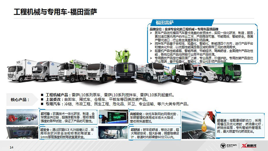 福田汽車已形成集整車制造、核心零部件、汽車金融、車聯(lián)網(wǎng)、福田電商、二手車為一體的汽車生態(tài)體系,涵蓋整車、零部件、汽車后市場三大業(yè)務(wù)版塊。整車業(yè)務(wù)覆蓋卡車、大中客車、輕型客車、皮卡、工程機(jī)械與環(huán)境裝備、新能源汽車等6大業(yè)務(wù)單元及18個產(chǎn)品品牌。在超級動力鏈層面,福田汽車與康明斯、采埃孚等全球合作伙伴,全球首創(chuàng)動力鏈集成創(chuàng)新模式,成立福田汽車動力集成創(chuàng)新中心PDIC,定制打造福田汽車第一條動力鏈產(chǎn)品——“X超級動力鏈”,引領(lǐng)中國商用車動力系統(tǒng)變革。后市場業(yè)務(wù)著力服務(wù)生態(tài)建設(shè),覆蓋用戶從購車到用車的全生命周期,積極拓展金融、二手車業(yè)務(wù),將智能科技融入服務(wù)體系,2020年,發(fā)布智能互聯(lián)業(yè)務(wù)品牌——會享福,著力推進(jìn)商用車后市場服務(wù)生態(tài)建設(shè)。