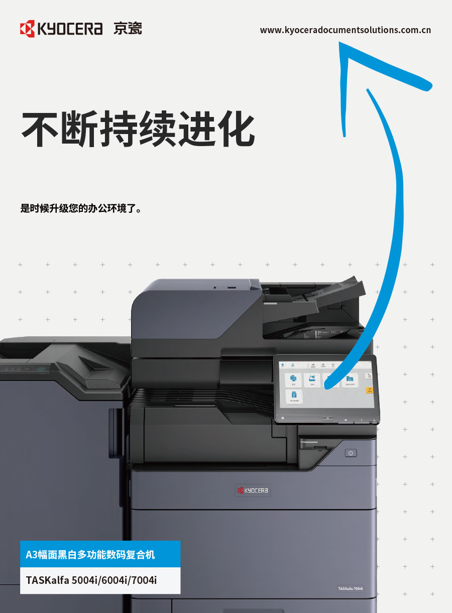 京瓷株式會社由稻盛和夫先生創(chuàng)辦于1959年。“敬天愛人”社訓(xùn)貫徹集團(tuán)各分公司運營中。京瓷辦公信息系統(tǒng)(中國)有限公司主要負(fù)責(zé)彩色和黑白數(shù)碼復(fù)合機(jī)、彩色和黑白數(shù)碼激光打印機(jī)、生產(chǎn)型彩色噴墨數(shù)碼印刷系統(tǒng)、辦公解決方案等系列辦公自動化設(shè)備的銷售。京瓷產(chǎn)品憑借其更低的后期總體使用成本,可靠的長壽命感光鼓,獲得眾多政府、企業(yè)的青睞,在中國的市場占有率逐年穩(wěn)步提升。