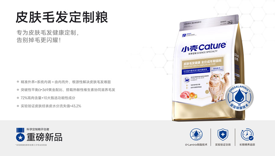 主要產(chǎn)品:小殼絕育定制糧,小殼皮膚毛發(fā)定制糧,小殼免疫呵護定制糧,小殼功能主食罐系列(小殼排毛主食罐,小殼魚油主食罐),小殼小輕松凍干棒系列(小殼貓草棒pro,小殼魚油棒pro)